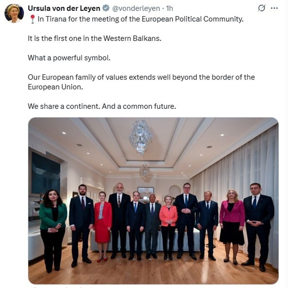 “Në Tiranë për takimin e Komunitetit Politik Evropian. Është i pari në Ballkanin Perëndimor. Çfarë simboli i fuqishëm. Familja jonë evropiane e vlerave shtrihet shumë përtej kufirit të Bashkimit Evropian. Ne ndajmë një kontinent. Dhe një të ardhme të përbashkët”, shkroi von der Leyen në platformën "X", transmeton Telegrafi.