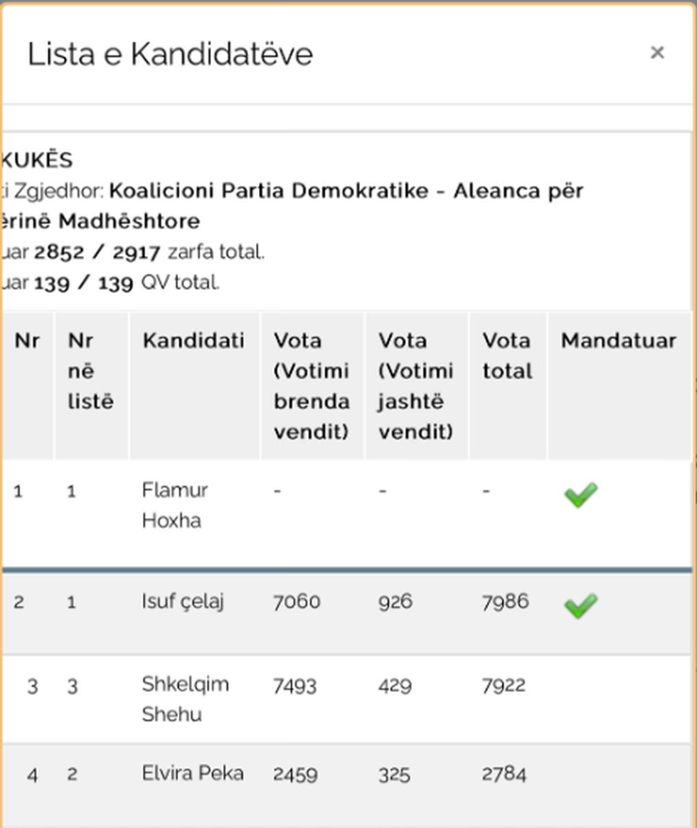 Nga rezultati i votave nga jashtë, në këtë qark është ndryshuar renditja brenda vetë listës së PD-së.