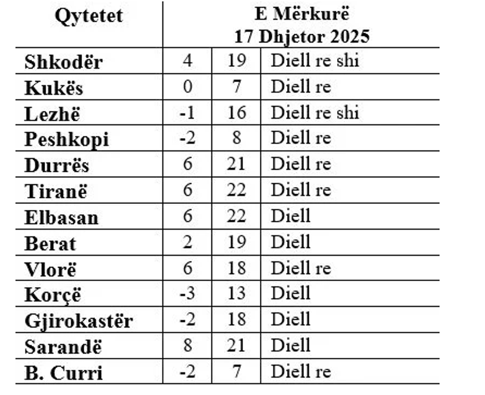 Kjo e mërkurë do të jetë me kushte të paqëndrueshme atmosferike, me vranësira dhe reshje shiu.