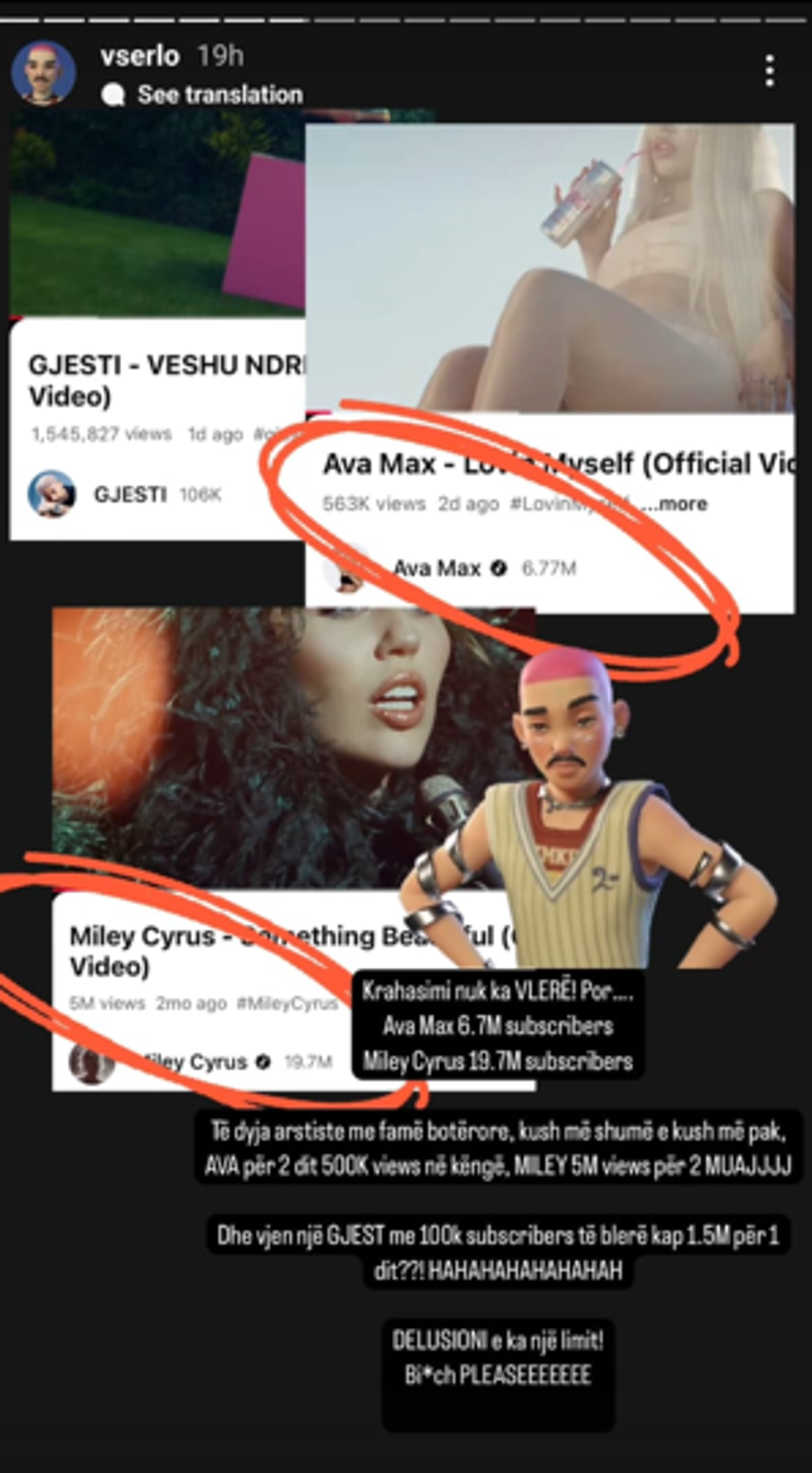 Ish-konkurrenti ka bërë krahasime të drejtpërdrejta me artistë ndërkombëtarë si Miley Cyrus dhe Ava Max, duke theksuar se ato kanë më shumë ndjekës, por më pak klikime në këngët e tyre.