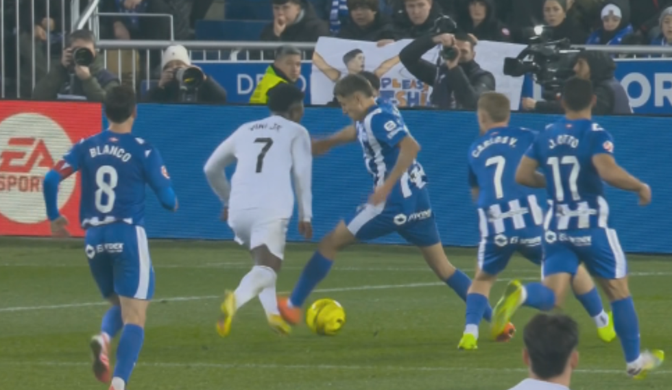 Vinicius u rrëzua në zonë pas një ndërhyrjeje të mbrojtësit të Alaves, por gjyqtari dhe VAR refuzuan mundësinë.