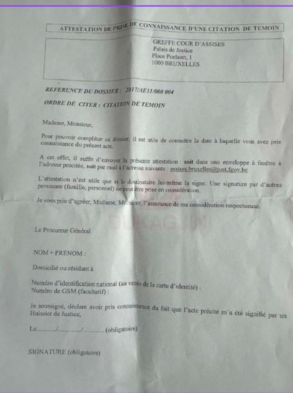 Kjo ftesë është bërë e ditur më 26 dhjetor të vitit të kaluar nga Prokurori i Gjykatës së Apelit në Bruksel.