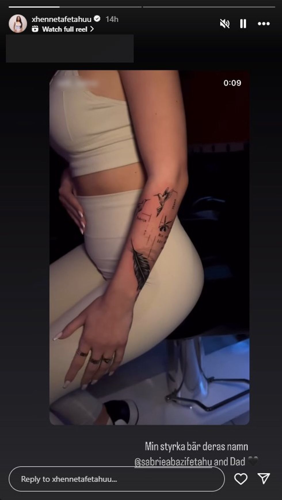 Tani, për të shprehur mirënjohjen e thellë, ajo ka vendosur ta përjetësojë këtë lidhje të veçantë me një tatuazh ku ka gdhendur emrin "Sabrije" në lëkurën e saj.