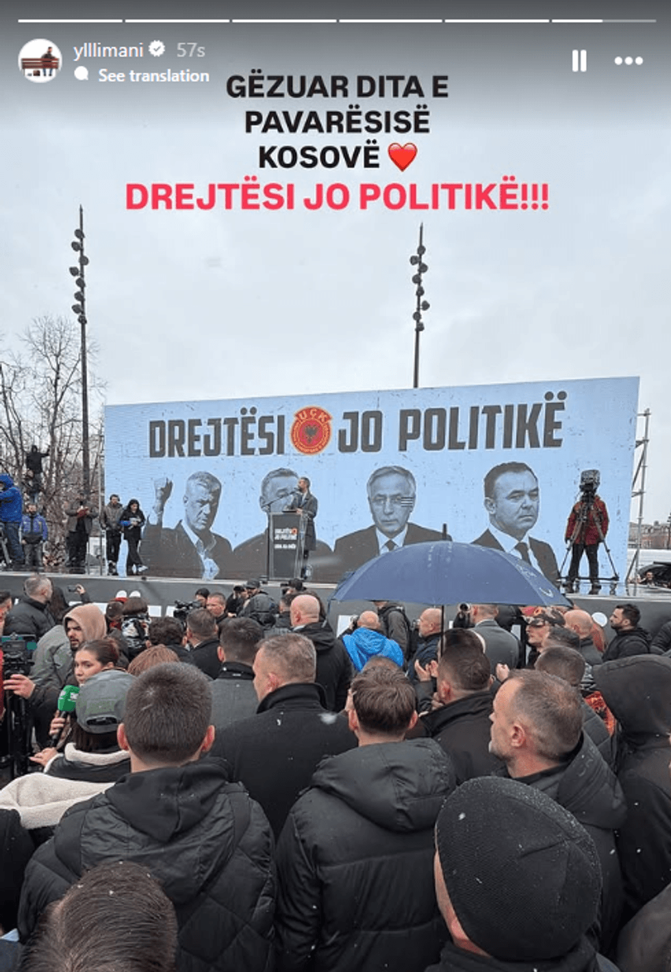 "Gëzuar dita e Pavarësisë Kosovë. Drejtësi jo politikë", ka shkruar gjithashtu në një postim të shpërndarë në Instagram.
