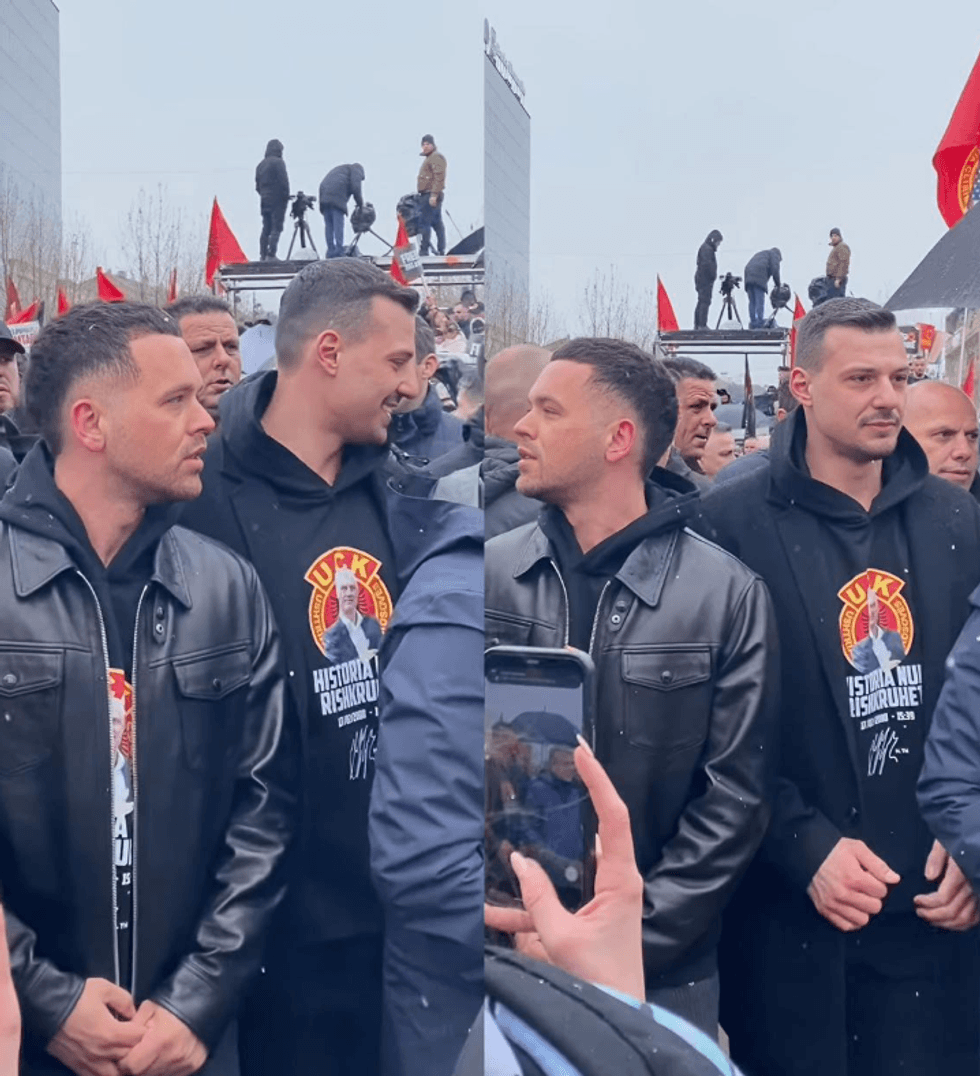Në disa pamje që qarkulluan në rrjete sociale, ai shfaqet krah djalit të ish-presidentit, Hashim Thaçi, Endritit.