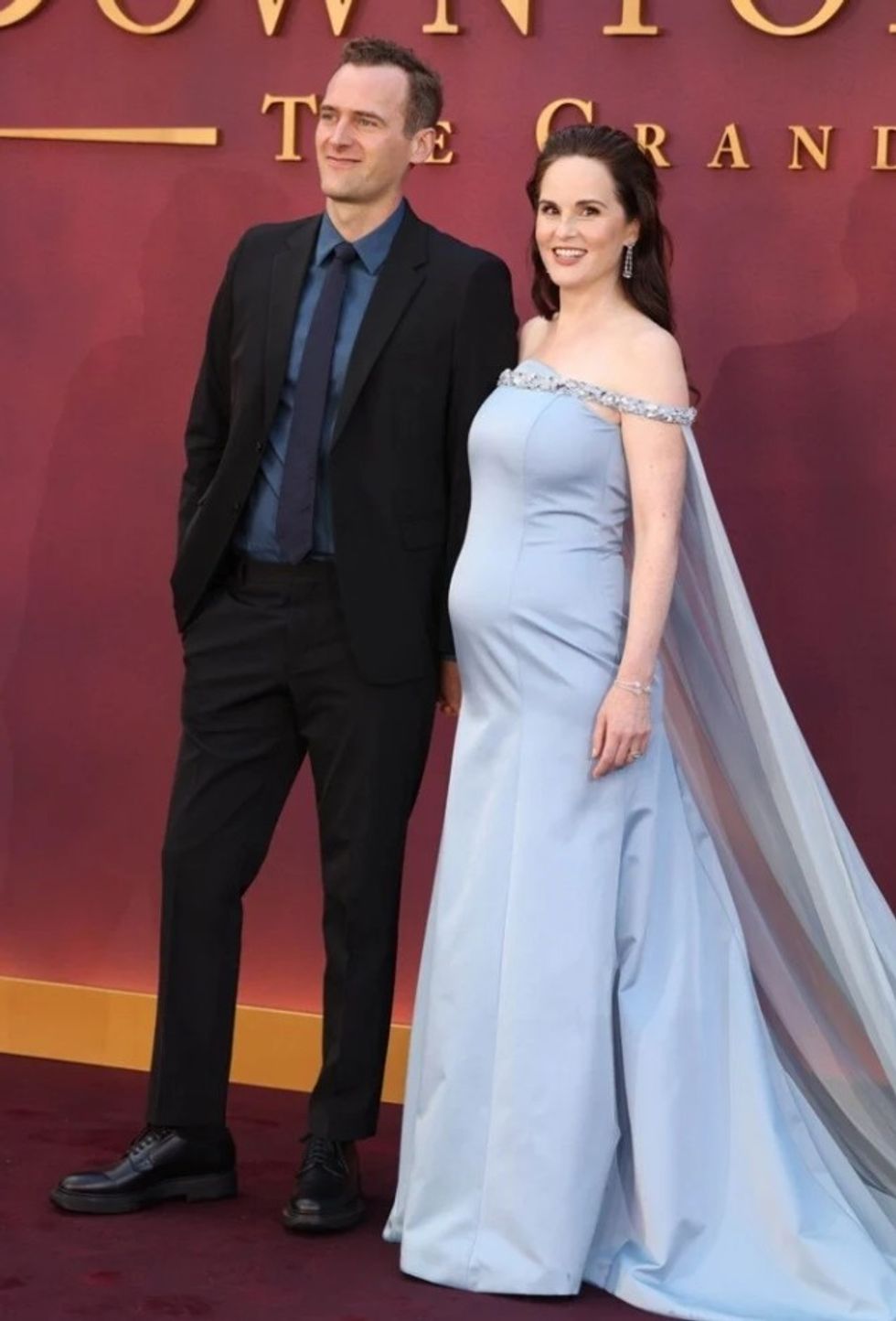 Ajo e ndau lajmin e lumtur duke u shfaqur me barkun shtatzënë në tapetin e kuq të premierës botërore të filmit "Downton Abbey: The Grand Finale", që u mbajt në Londër.