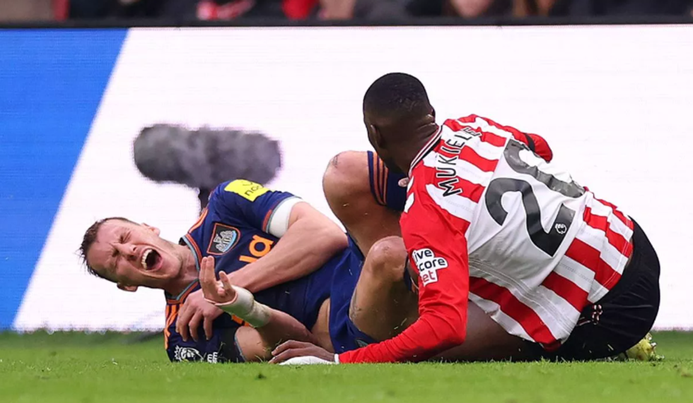 Burn pësoi një brinjë të thyer dhe një shpim në mushkëri gjatë një përplasjeje me mbrojtësin e Sunderland, Nordi Mukiele, në pjesën e parë të ndeshjes.