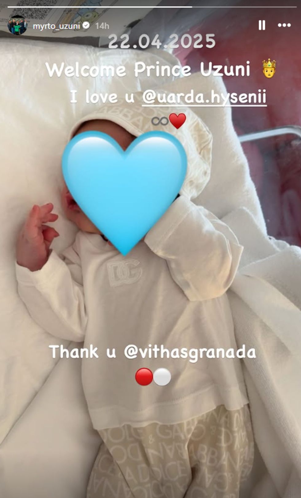 Në të njëjtin postim, futbollisti ka shprehur dashurinë edhe për partneren e tij, Uarda, duke i dedikuar fjalët: “Të dua Uarda”.
