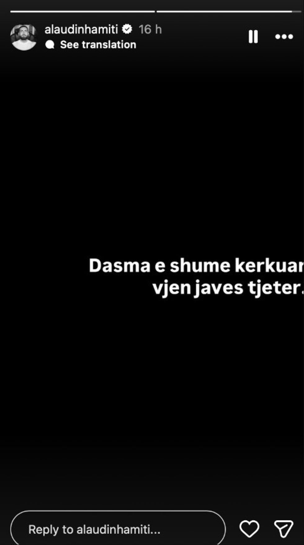 Në një postim të publikuar gjatë natës në InstaStory, Alaudini ka bërë të ditur se ceremonia festive brenda shtëpisë do të zhvillohet gjatë kësaj jave, pa dhënë më shumë hollësi.