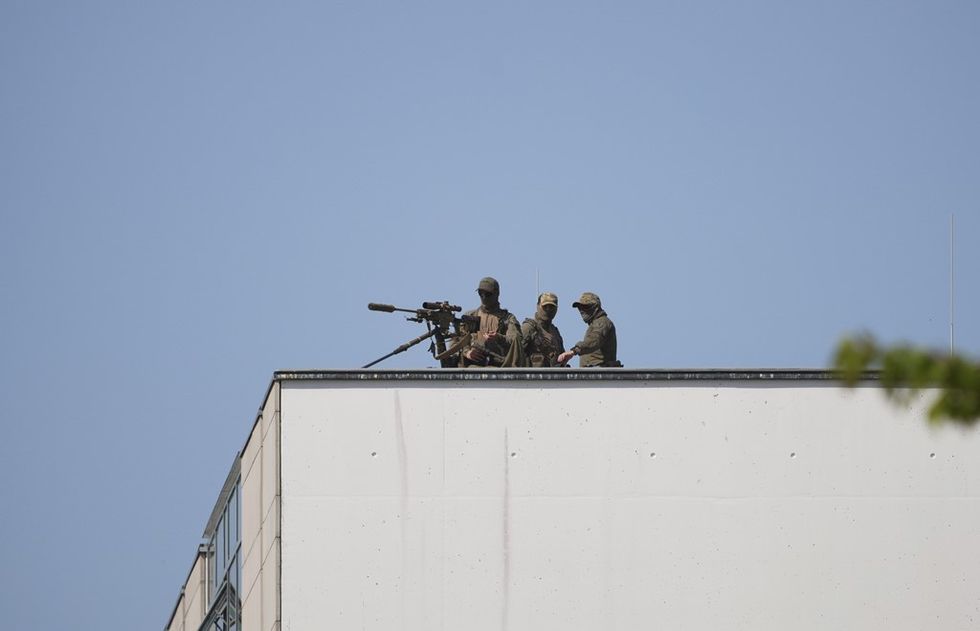 Policë u panë më motor uji në lumin Spree, derisa snajperistë ishin pozicionuar në kulmin e ndërtesës ku qëndron kancelari gjerman. /Telegrafi/