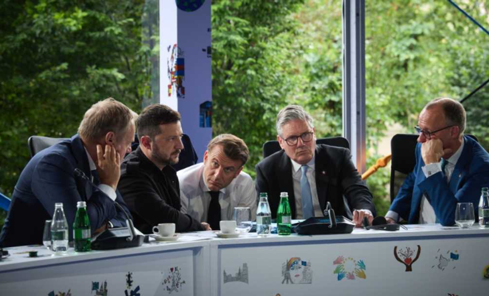 Ndryshe, liderët e Bashkimit Evropian u takuan sot në Tiranë në kuadër të samitit të Komunitetit Politik Evropian, ku ndër të pranishmit ishin presidenti i Francës, Emmanuel Macron, kancelari i Gjermanisë, Friedrich Merz, kryeministri i Britanisë, Keir Starmer, kryeministri i Polonisë, Donald Tusk, dhe presidenti ukrainas, Volodymyr Zelensky.