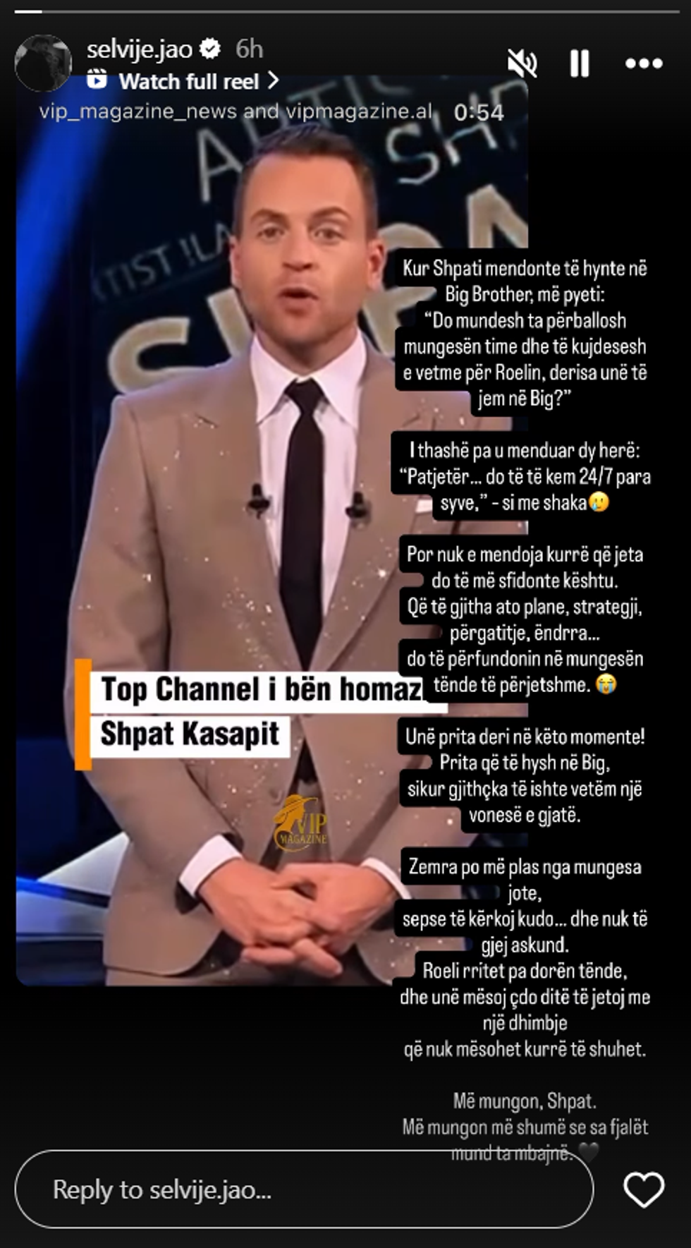 Në lidhje me këtë reagoi edhe bashkëshortja e tij, Selvije Jao, e cila tregoi brengën që kishte Shpati për t’u bërë pjesë e këtij formati.