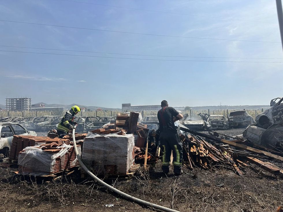 Një deponi e veturave në Hajvali është përfshirë nga zjarri.