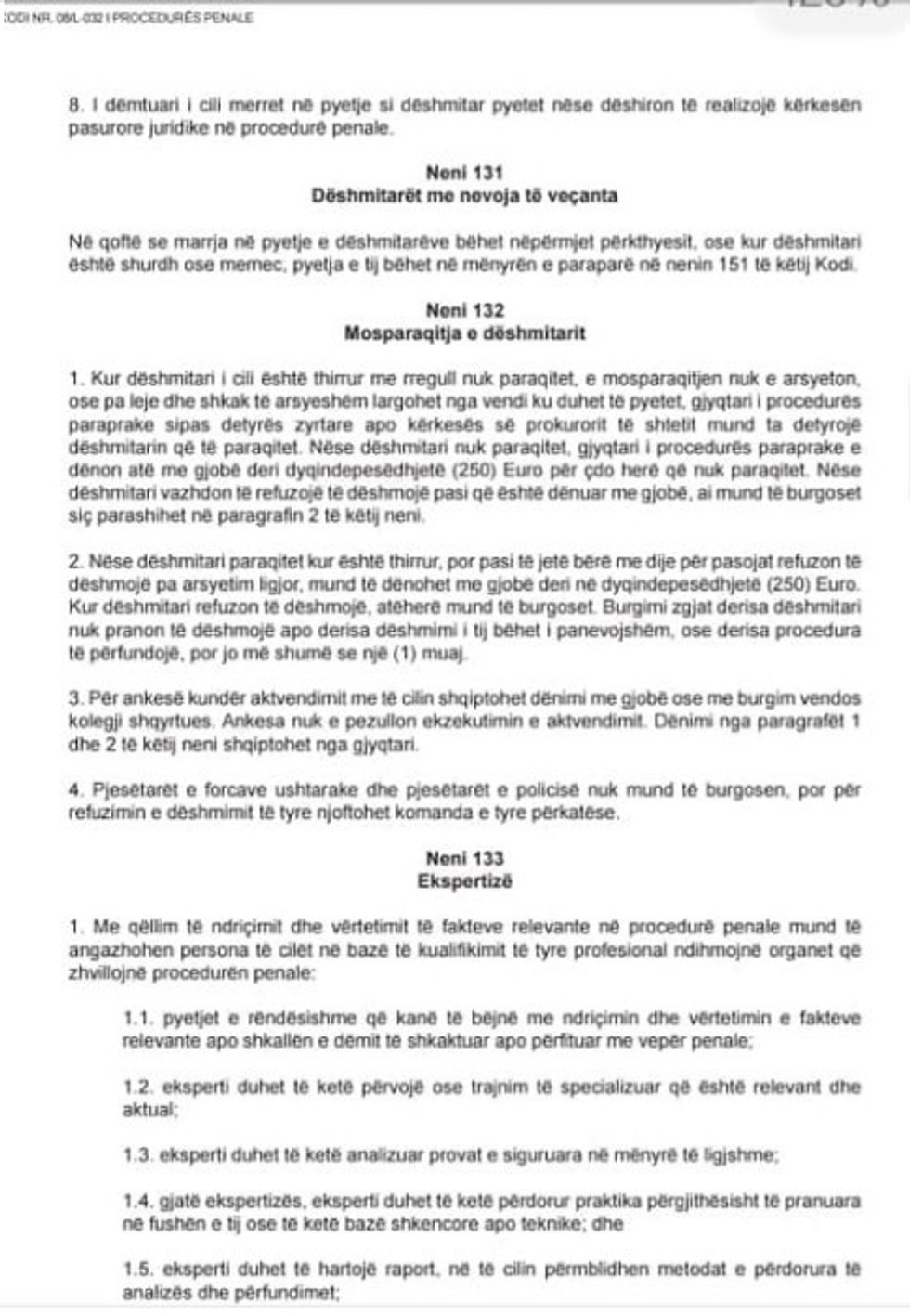 Sallahu, përmes një postimi në Facebook, ka komentuar nenin 132 të Kodit për Procedurën Penale lidhur me mosparaqitjen e dëshmitarit.