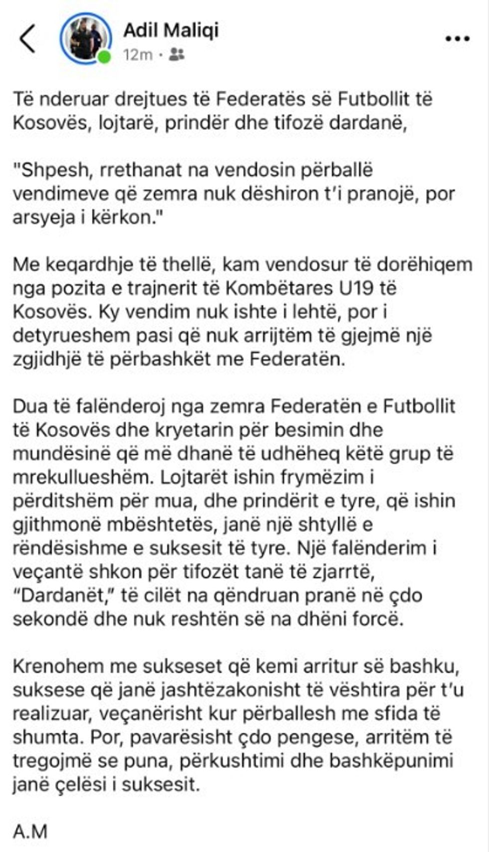 Njoftimi i plotë i Adil Maliqit: