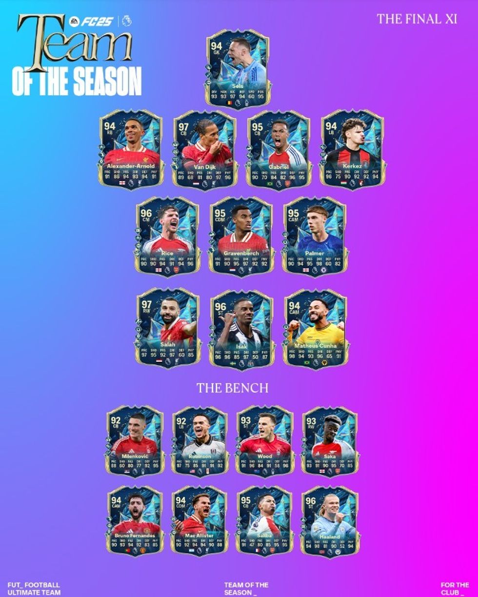 Liga Premier ka publikuar sot (e premte) formacionin më të mirë të sezonit 2024/2025 në elitën e futbollit anglez.